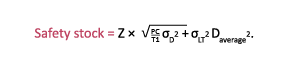 If both demand variability and lead time variability are present, the safety stock required to protect against each factor can be combined statistically, which results in a lower total safety stock than the sum of the two individual calculations. If demand variability and lead time variability are independent — meaning that they are caused by different influences — and they both are reasonably normally distributed, the combined safety stock equation is as follows: