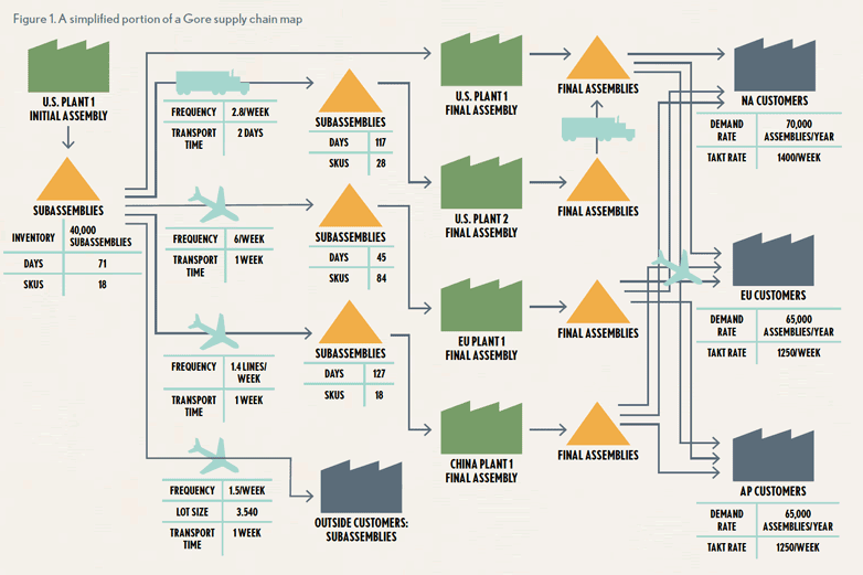While recent supply chain initiatives had led to some degree of supply chain optimization improvement, Gore supply chain leaders knew that additional benefits could be achieved with a more structured approach. They chose to apply high-level value stream mapping to the entire supply chain. So far, the process has been piloted on four supply chains representing the variety of Gore’s businesses, leading to increasing value as the process continues to advance.